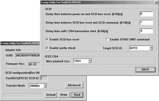 *Some legacy device may require unique SCSI bus parameter, in the case, refer the "FR1SX Configuration Utility" just below.