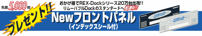 | ハードディスクの内容が書き込めるインデックスシール付きフロントパネル登場! REX-DOCKユーザ様の声をもとに生まれたリムーバブルケースを更に便利にするアイテムです。 今回REX-Dockシリーズ(リムーバブルケース)20万台出荷を記念して、キャンペーン期間に対象製品をご購入の方にNewフロントパネルプレゼント。以下要項をご参考の上お申込み下さい。先着 5,000 枚をご用意して、皆様のご応募をお待ちしています。 |