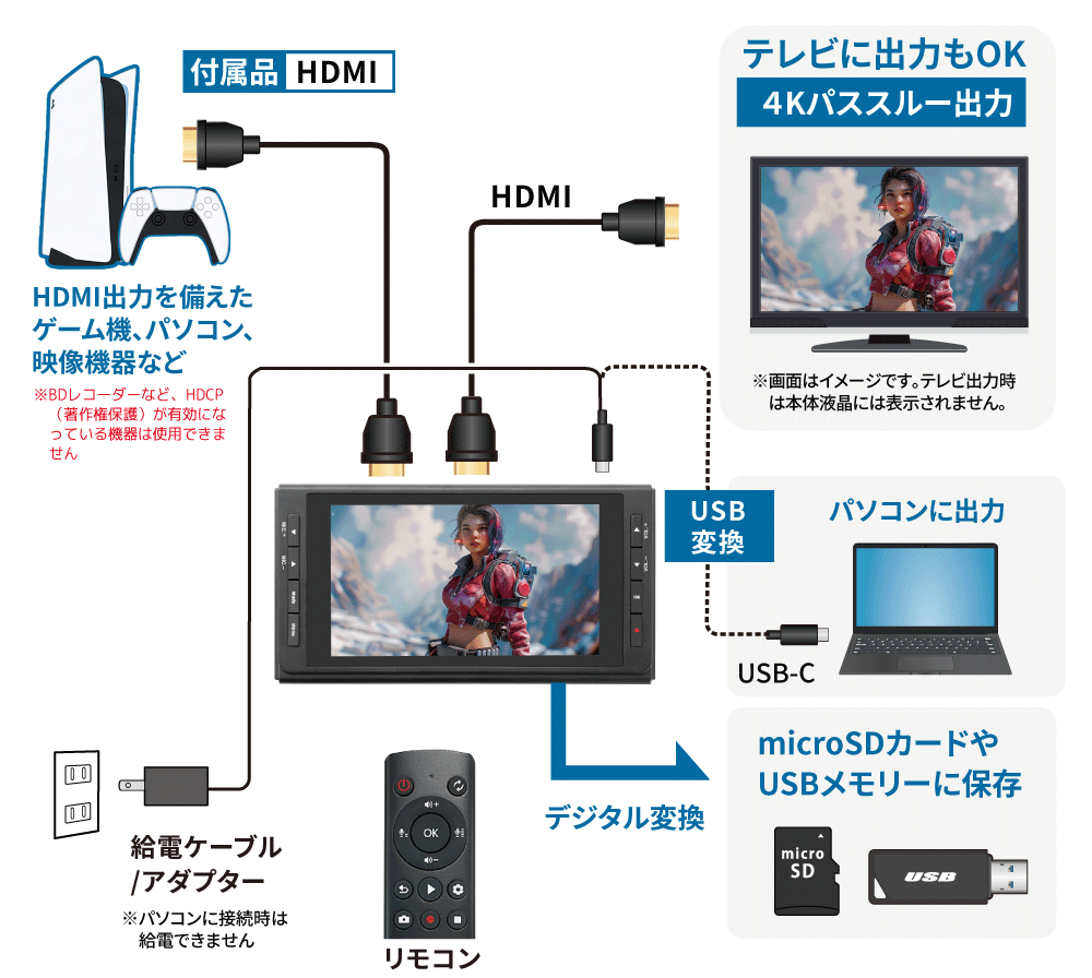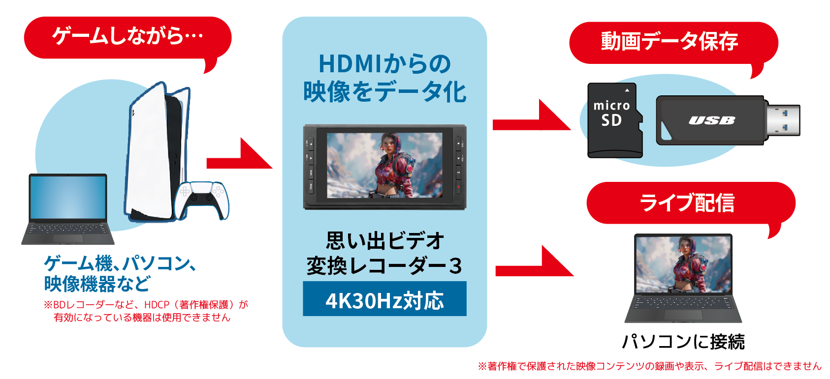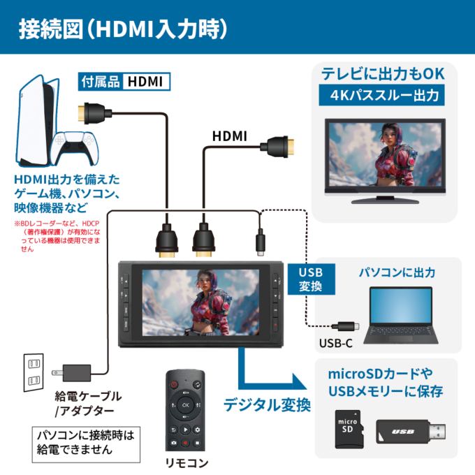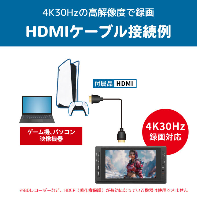 - ゲーム機やパソコンの操作を録画(HDMI入力)