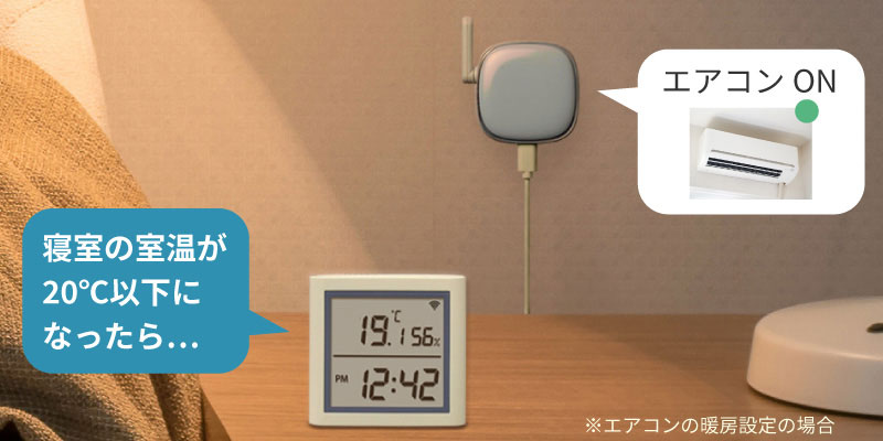 また、温度/湿度を条件とした家電操作も可能。『室温が20℃を下回ったら暖房をON』『湿度が40%を下回ったら加湿器をON』など、快適な環境を保つことができます。