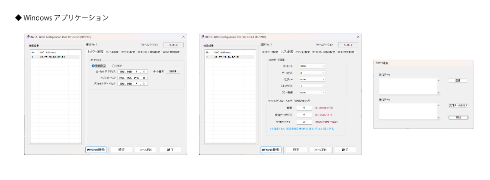 WF62 Configuration Tool(Windows用 ネットワーク・シリアル設定用ツール)を提供