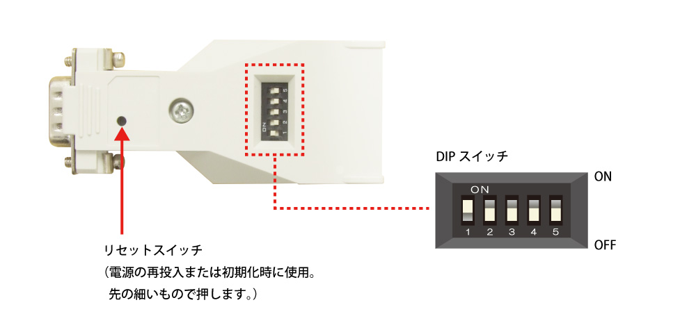 インフラストラクチャーモードの設定変更後は、本製品のDIPスイッチ(1番)の変更のみで両モードを切り替えて使用可能。