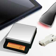 バーコードスキャナー、電子天びん、磁気カードリーダー、RF-IDタグリーダーなどを接続できます。