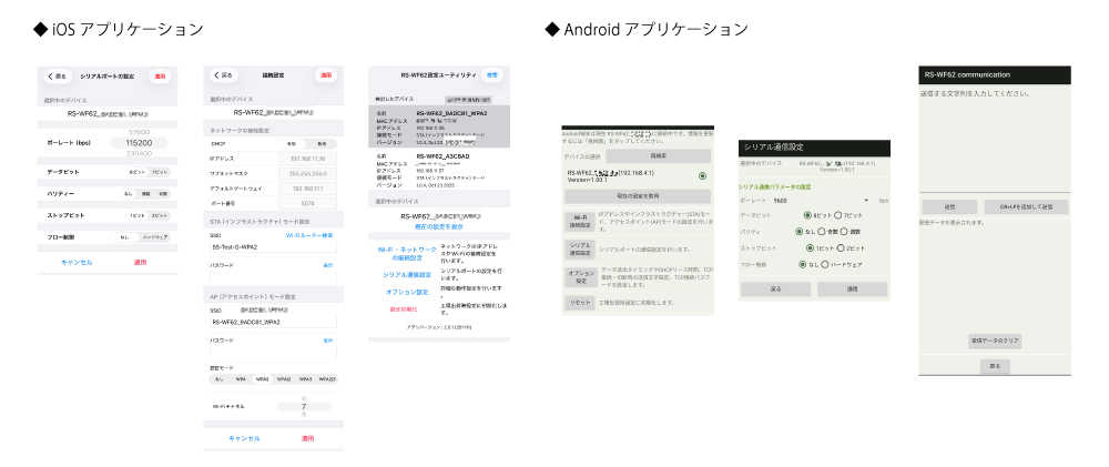 iOS/Android用の設定ツールと通信サンプルプログラムも提供。