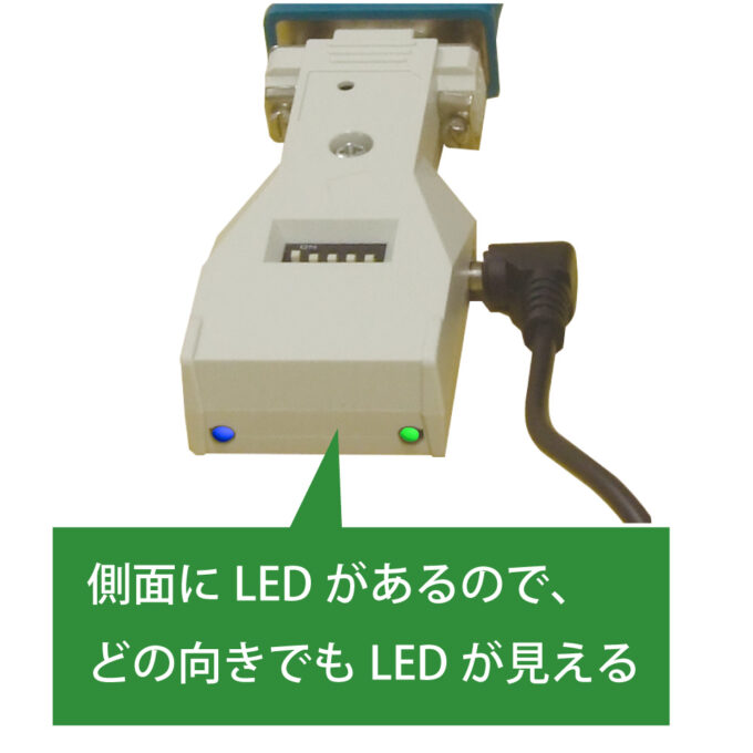 本製品には、接続された機器との通信状態がわかるLEDを搭載。従来品のLEDは本体天面にあり、ポートの向きによっては見えませんでした。本製品ではLEDをコネクタの反対側に配置することで、どの向きに挿してもデータ送受信を確認できます。