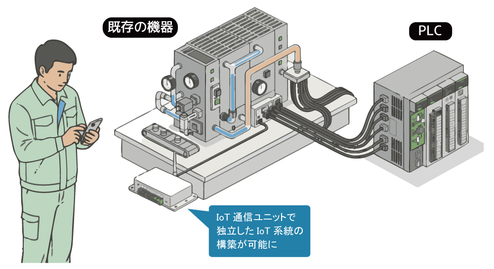 IoT通信ユニットは、機器から出力される信号を直接受け取り、PLCを介さずにクラウドへデータを伝送する手段を提供します。