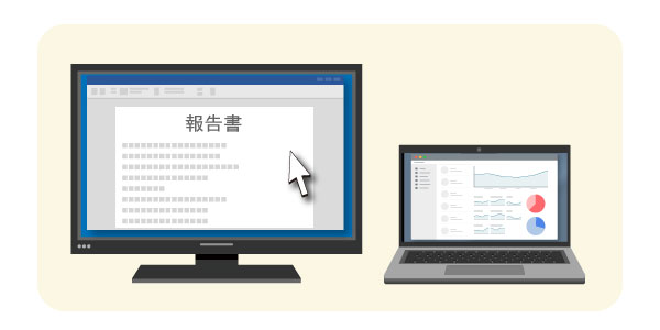 2台のモニターを1つの画面として使用します。資料作成など、複数ウィンドウを使う並行作業におすすめ。