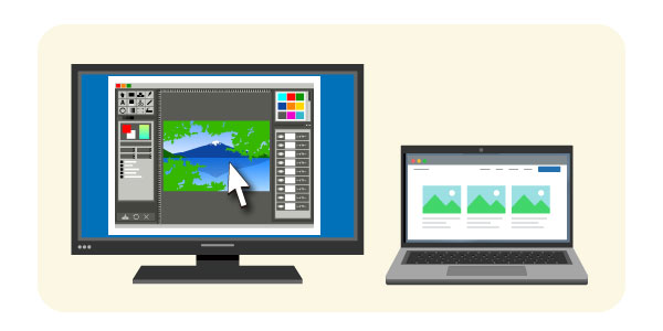 デュアルモニター(デュアルディスプレイ)は、パソコンの映像を2画面に表示する方法です。
