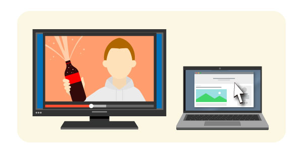 ノートPCをテレビにつなげて、動画や写真を大画面で表示。