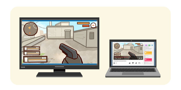 配信画面やコメントを見ながら、フルスクリーンでゲーム配信。