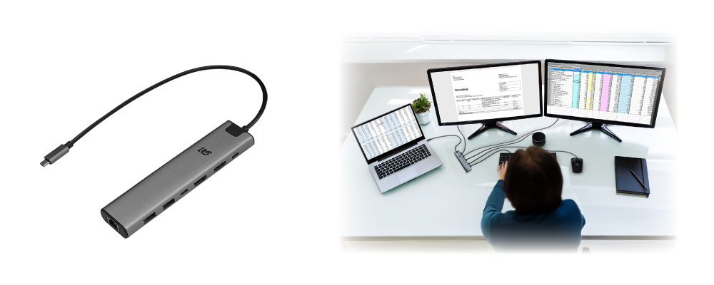 3画面で作業しながら、USB機器や有線LANも活用可能。